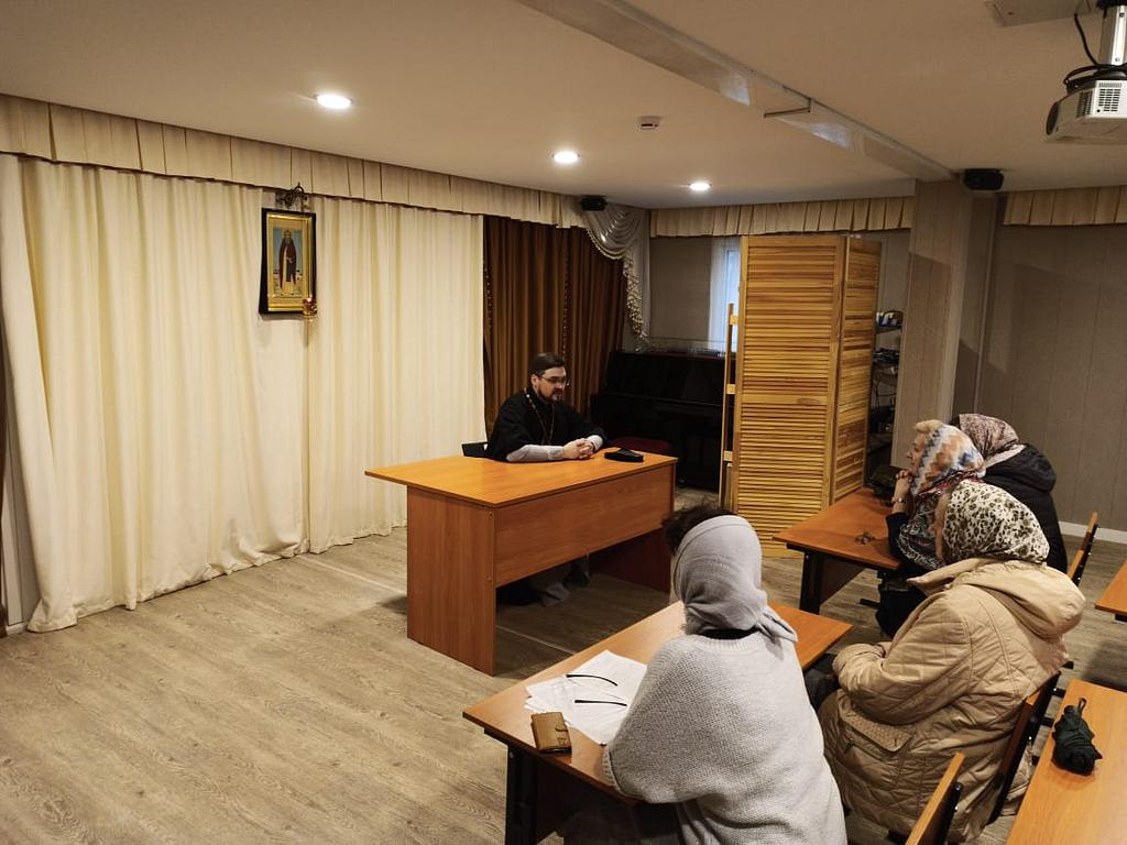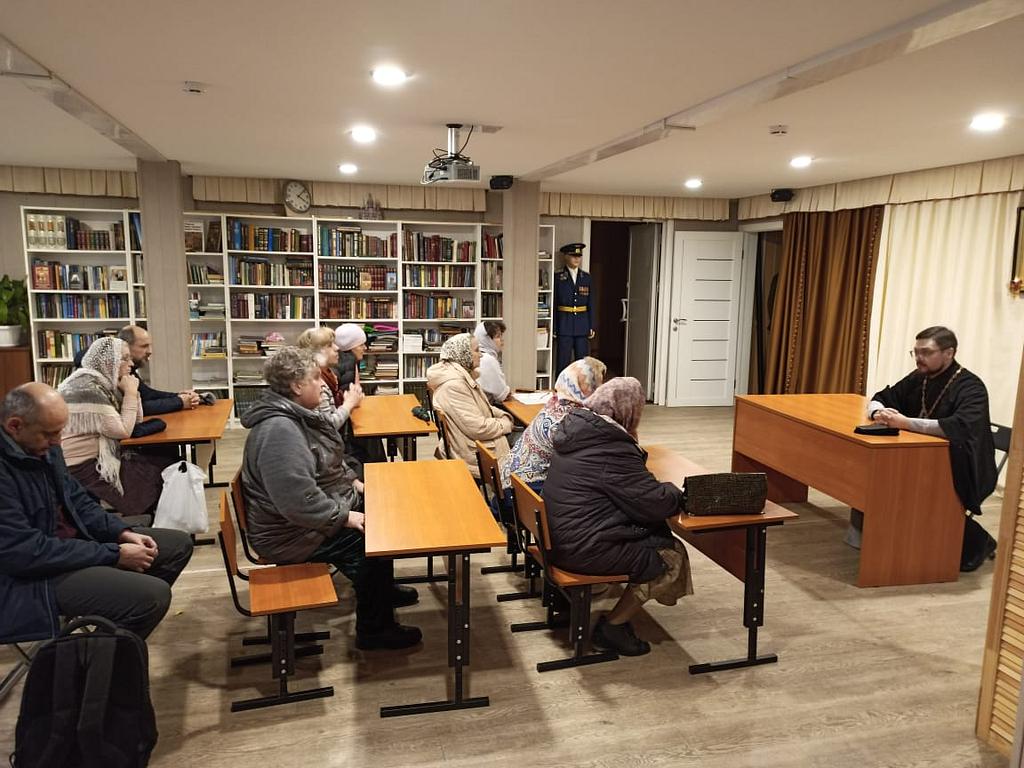 Встречу провел настоятель храма иерей Илия Власов. Встречи проводятся по субботам в 15.00 в Воскресной школе храма.