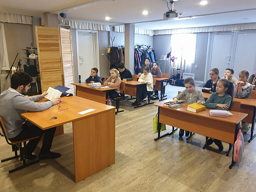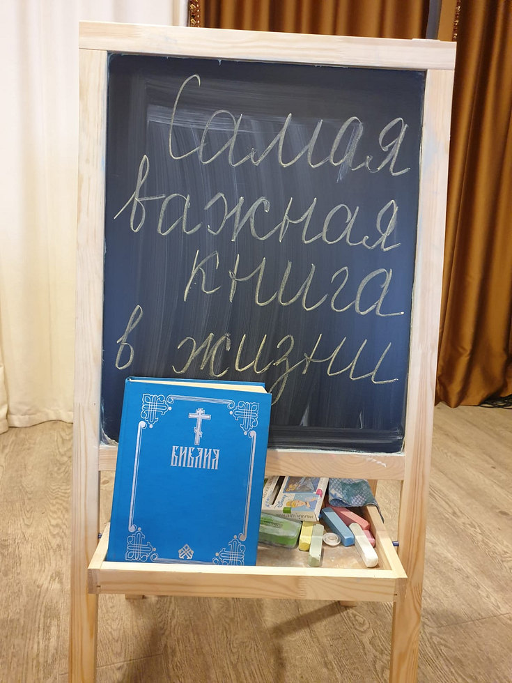 Детям рассказали из каких книг состоит Библия, и что является главной темой данной книги. Во время урока дети могли изучать Библию и задавать интересующие вопросы.