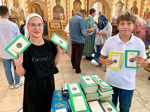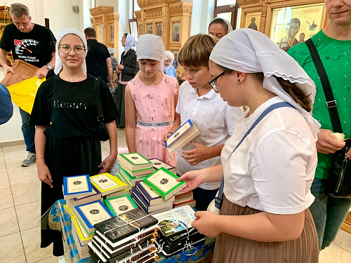 После молебна, дети из Воскресной школы устроили просветительскую акцию, повещённую Дню Знаний. Ученики раздавали всем прихожанам храма книги классиков русской художественной литературы, миссионерские православные листовки и диски.