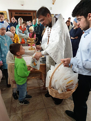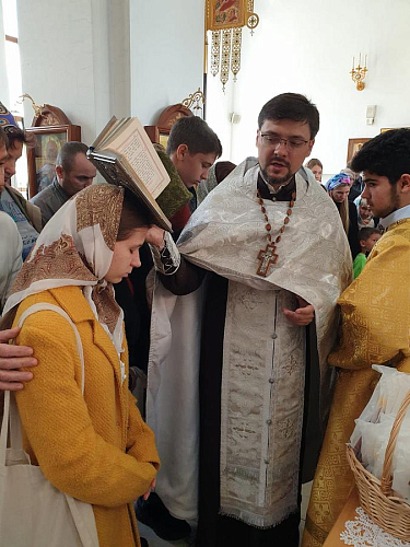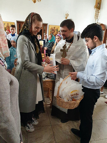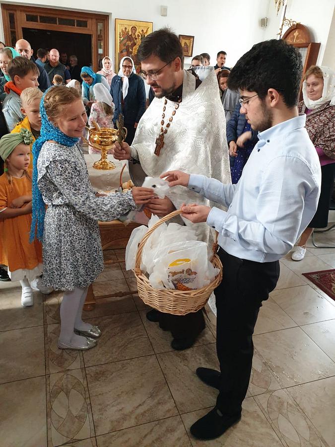 Настоятель окропил всех молящихся святой водой, благословил учащихся и вручил им подарочные наборы к началу учебного года.