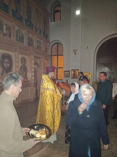 24 декабря 2022 года, в день памяти Преподобного Даниила Столпника, в храме святого пророка Божия Илии в Северном Бутово состояласьночная Божественная Литургия с сугубой молитвой о здравии болящих и об упокоении с выниманием частиц на проскомидии и чтением имён на ектениях после Евангелия.