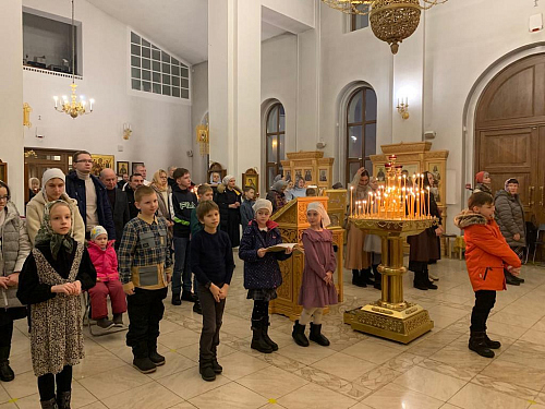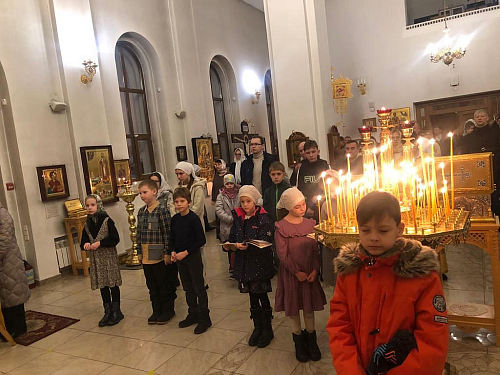 25 декабря 2021 года, в день памяти святителя Спиридона, епископа Тримифунтского, в храме святого пророка Божия Илии в Северном Бутово г.Москвы состоялась Божественная Литургия с участием учащихся Воскресной школы и их родителей.