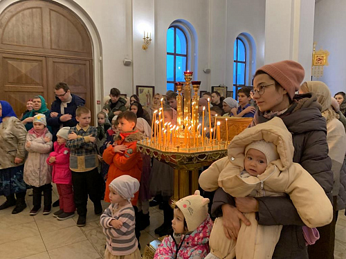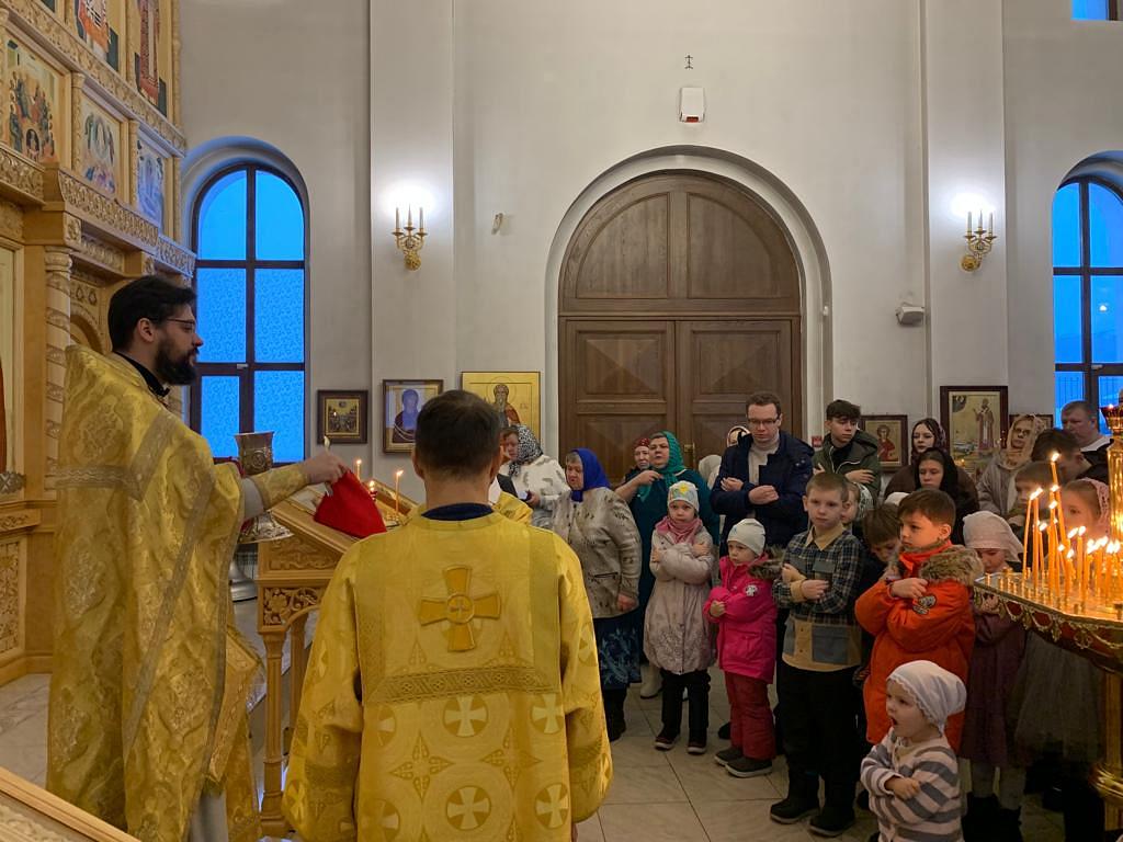 По окончании Божественной Литургии настоятель храма иерей Илия Власов обратился к учащимся, родителям и всем прихожанам с напутственным словом, отметив важность совместного участия родителей и детей в службе и «семейной» подготовке к Святому Причастию.