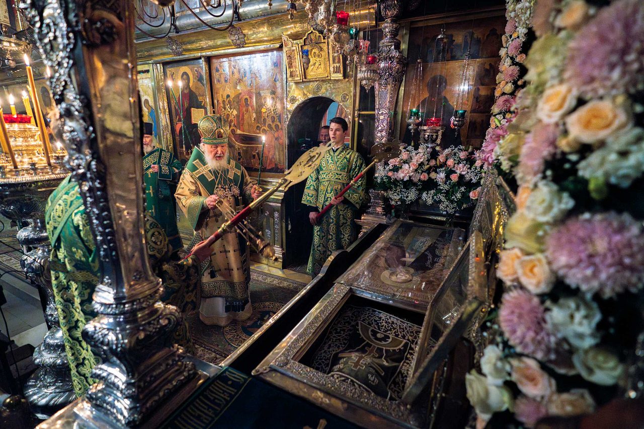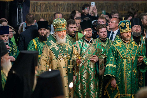7 октября 2025 года, в канун дня преставления преподобного Сергия, игумена Радонежского, чудотворца, Святейший Патриарх Московский и всея Руси Кирилл совершил всенощное бдение в Троицком соборе Свято-Троицкой Сергиевой лавры.