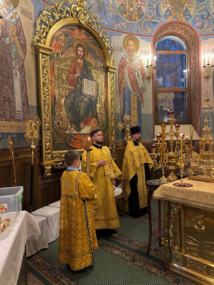 За богослужением пел мужской хор храма преподобной Евфросинии Московской (регент Даниил Кузин). После чтения Евангелия Воскресную песнь («Воскресение Христово видевше...») соборно исполнили все присутствующие.