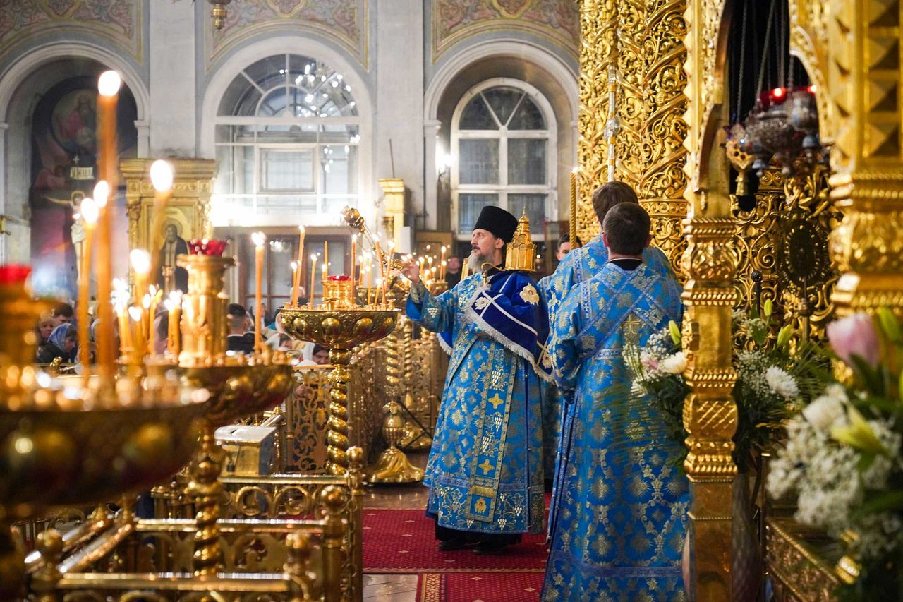 В Богоявленском кафедральном соборе хранится особо чтимый список Казанской иконы Божией Матери, созданный в XVII веке и находившийся прежде в Казанском соборе на Красной площади до его закрытия в 1930 году. По традиции перед полиелеем, во время пения тропаря, чтимый образ был перенесен с престола на аналой в центре храма, где святыне поклонились многочисленные верующие.