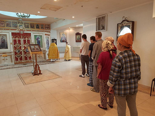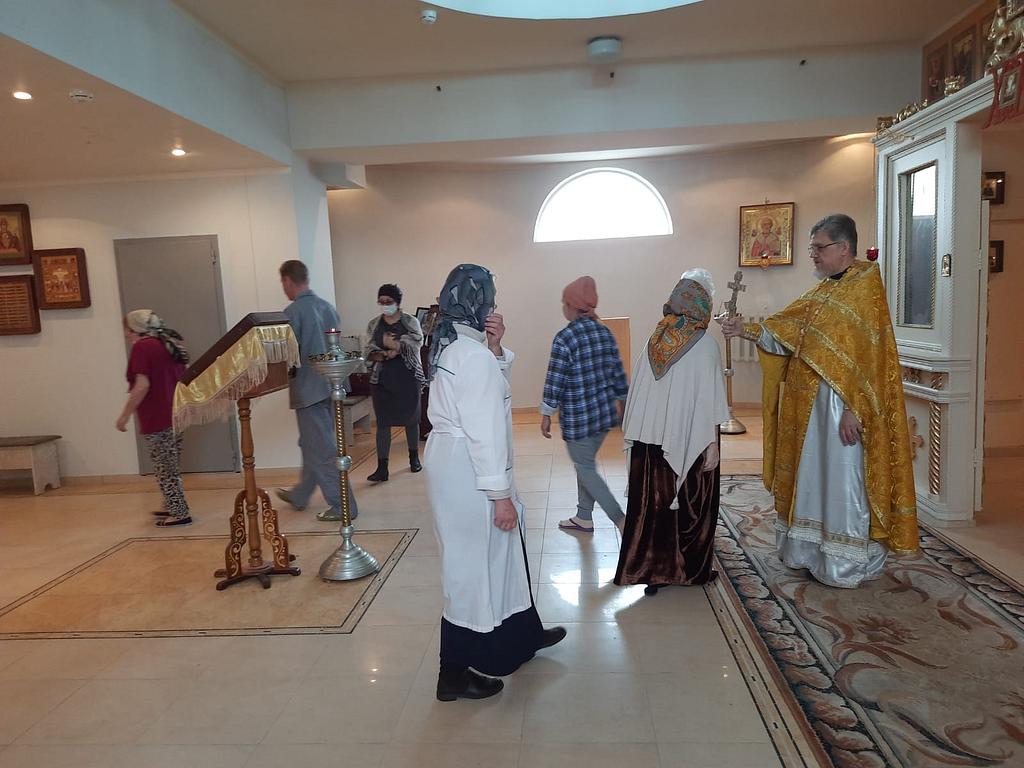 Совершение Богослужений в домовом храме в честь иконы Божией Матери «Неупиваемая чаша» осуществляется на регулярной основе, за духовной и нравственной поддержкой имеют возможность обратиться все находящиеся в стационаре пациенты.