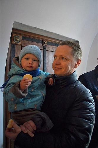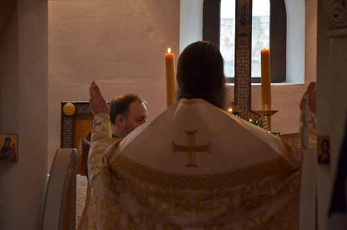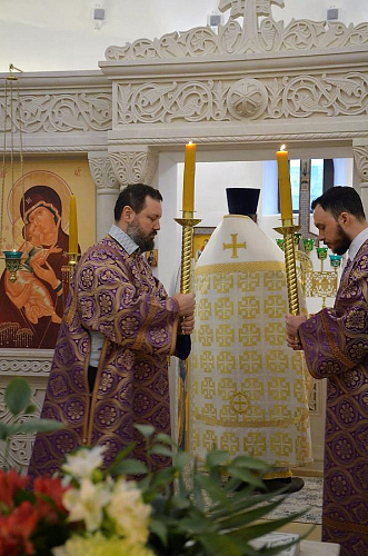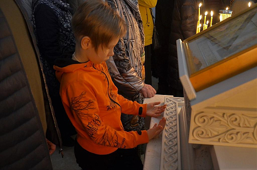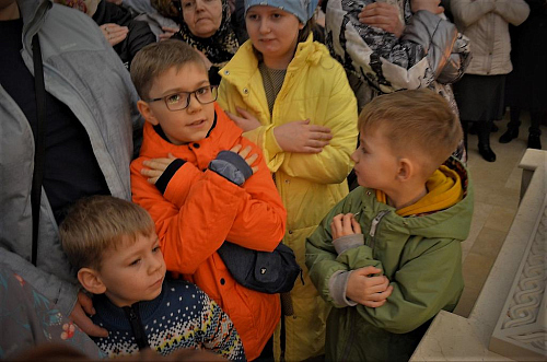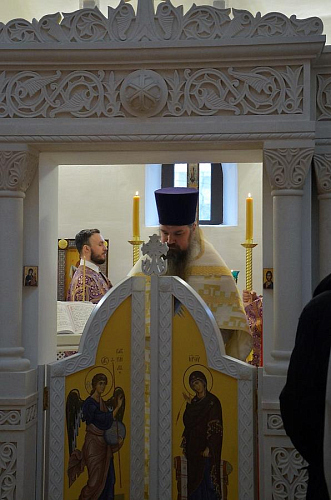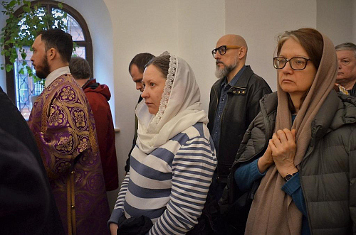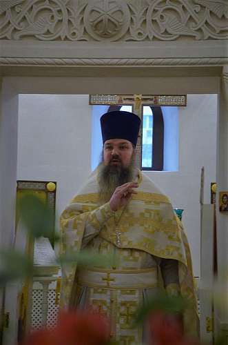 По окончании Литургии иерей Иоанн поблагодарил прихожан за совместную молитву, поздравил всех с Воскресным днем и столь знаменательным событием для прихода как первое совершение двух Литургий - ранней и поздней, что стало возможно после получения антиминса для крестильного храма, и обратился к верующим с проповедью, посвященной воскресному Евангельскому чтению и преподобной Марии Египетской.