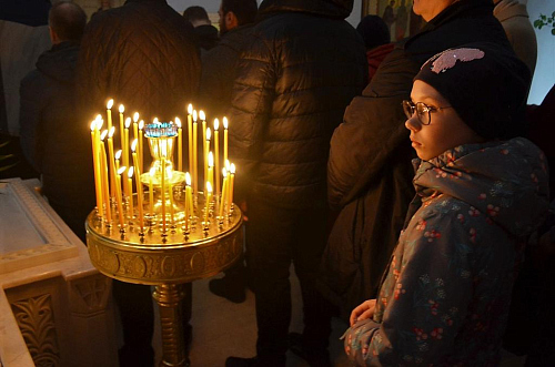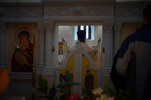 Накануне, в храме Святителя Луки архиепископа Симферопольского и Крымского в Зюзине было совершено Всенощное бдение, во время которого, на утрени, после чтения Евангелия, последний раз в этом году, было исполнено песнопение «Покаяния отверзи двери». Это песнопение входит в состав богослужения с началом пения Постной Триоди, в канун Недели о мытаре и фарисее. Песнопение «Покаяния двери отверзи» пелось на каждой воскресной всенощной в подготовительный период к Великому посту и до пятого воскресенья Великого поста, посвященного преподобной Марии Египетской.