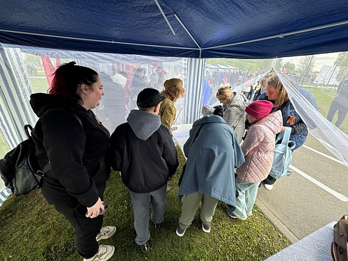 На просторном парковом пространстве было организовано две локации для проведения отдыха и просветительской работы для горожан.
