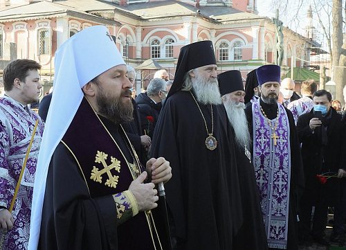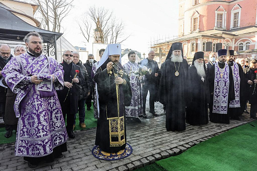 Далее митрополит Волоколамский Иларион совершил литию на месте погребения греков, покоящихся в некрополе Донского монастыря.