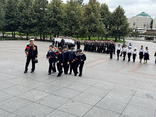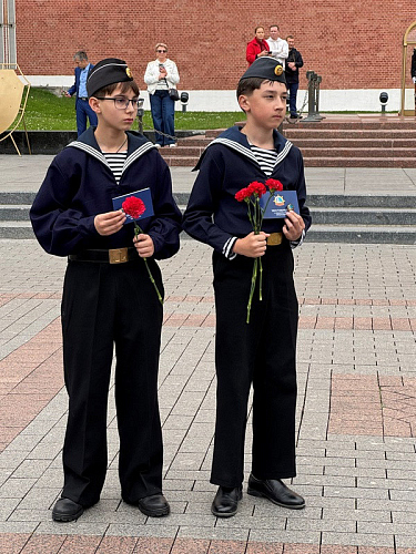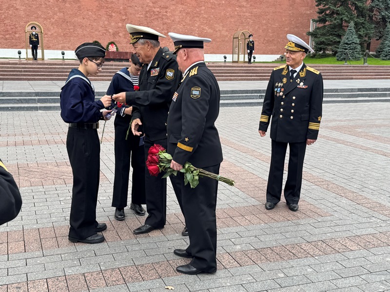 Перед памятной церимонией двум морским кадетам Клуба "Воробьевы горы" Корякину Петру и Узорову Леониду были вручены Знаки "Юный моряк" от ОДПФ, которые они заслужизи выполнив поставленные нормативы.
