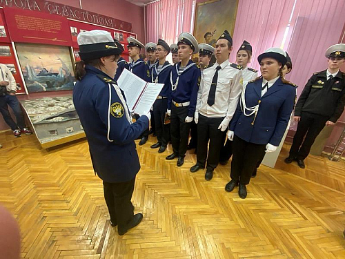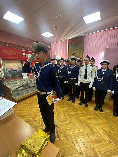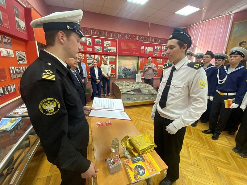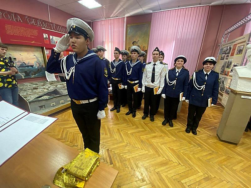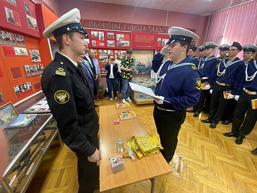 22 сентября 2023 г. в Музее Черноморского флота при ГБОУ ДО ДТДиМ «Севастополец» состоялась церемония приведения к торжественной клятве Юнармейца юнармейского отряда ВПК "Армада" ГБОУ ДО ДТДИМ "Севастополец" и юнармейского отряда "Юнфлот АВТ" Колледжа им. министра речного флота Л.В. Багрова АВТ РУТ (МИИТ).