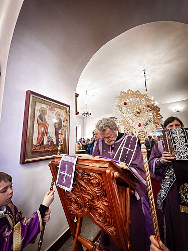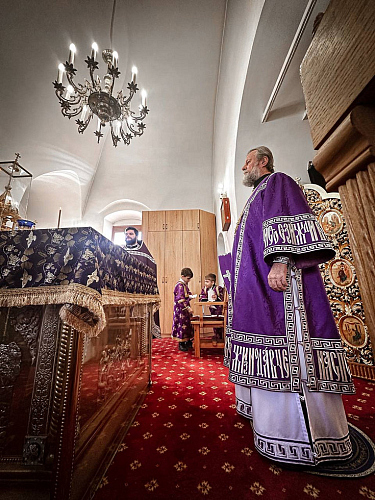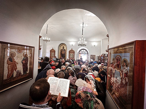 На Богослужении присутствовали соотечественники, которые прибыли в этот день на Подворье, являющееся Представительством Кишиневско-Молдавской Митрополии, чтобы приступить к таинствам Исповеди и Причастия.