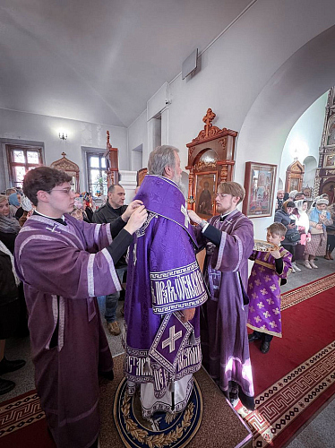 По окончании Божественной Литургии были пропеты тропарь и кондак празднику и совершено поклонение Кресту Господню.