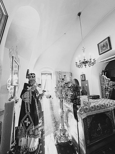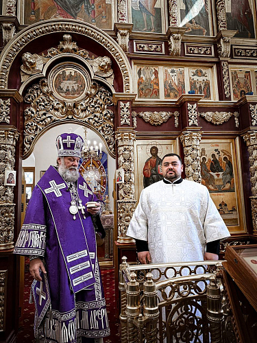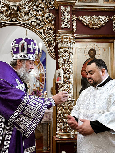 После облачения Архиерея на середине храма Высокопреосвященный Владыка Митрополит посвятил во чтеца Анатолия Германа.