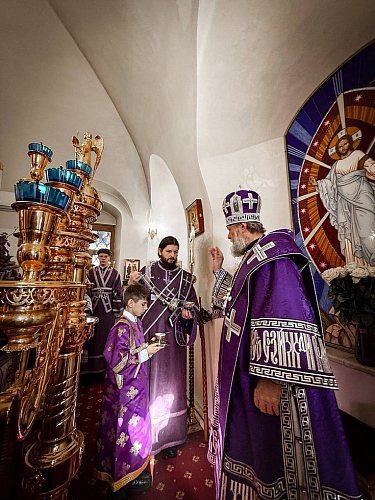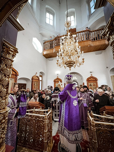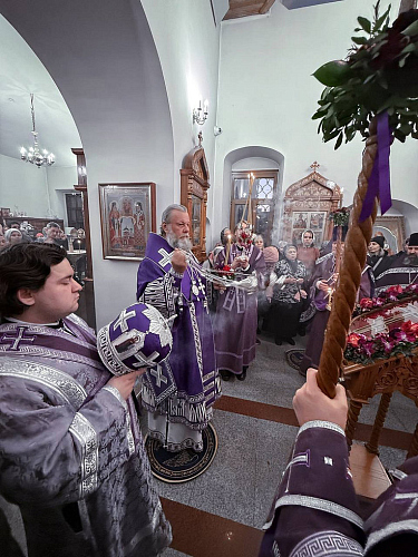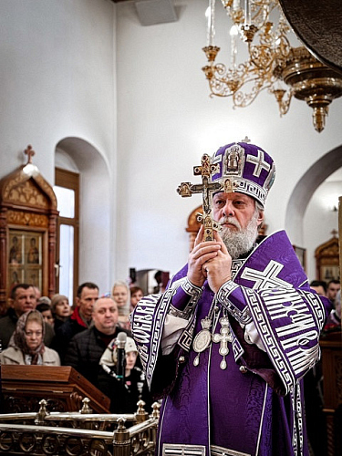 Затем Владыка Владимир обратился к пастве с Архипастырским словом проповеди. Также он сердечно поблагодарил всех за помощь, оказываемую приходу, поздравил с праздником, пожелал в молитве и добрых делах провести оставшиеся дни Великого поста, чтобы достойно встретить светлый праздник Пасхи, и преподал благословение.