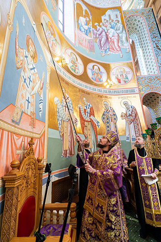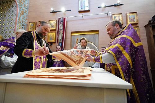 По завершении Литургии было совершено поклонение Честному и Животворящему Кресту Господню.