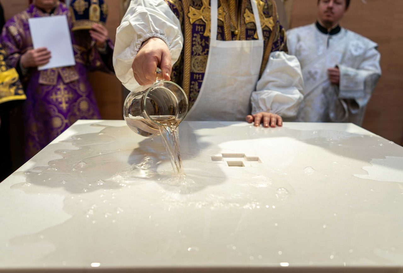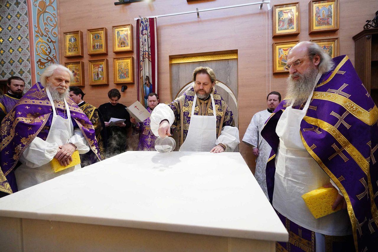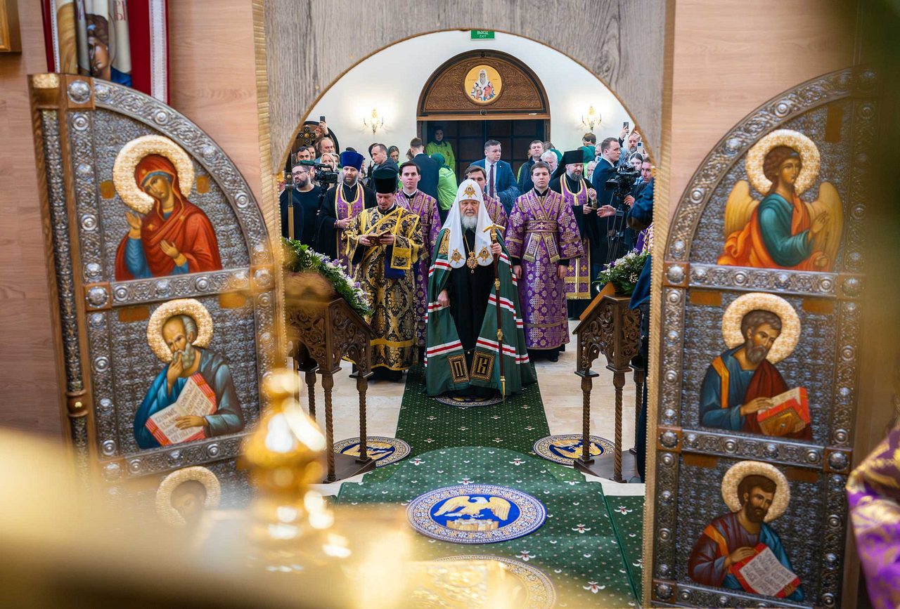 Святейший Патриарх Кирилл освятил два престола: центральный — в честь священномученика Ермогена, южный — в честь преподобного Сергия Радонежского. Также были освящены 20 антиминсов.