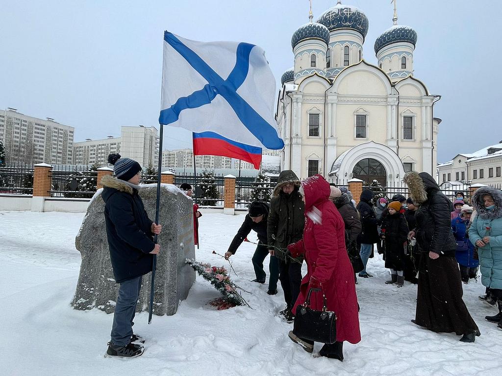 В почетном карауле стояли воспитанники морского кадетского класса школы № 1161.