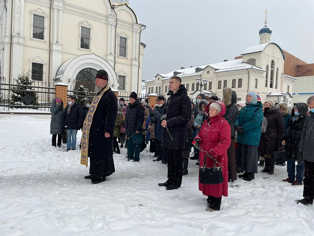 Перед началом богослужения настоятель обратился к собравшимся и призвал помнить подвиг наших воинов.