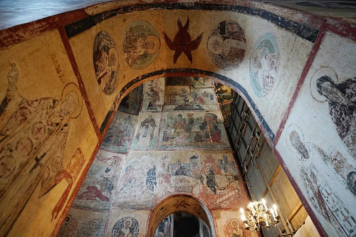 При пении величания «Архангельский глас» Святейший Патриарх Кирилл поклонился иконе Благовещения Пресвятой Богородицы в местном ряду иконостаса.