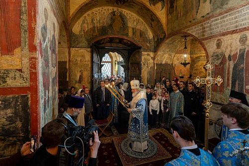Архиепископ Одинцовский и Красногорский Фома прочитал благодарственную молитву о благодеяниях Божиих, на Святейшем Патриархе Кирилле «в мимошедшее пятидесятишестилетие его служения у Престола Божия бывших»: