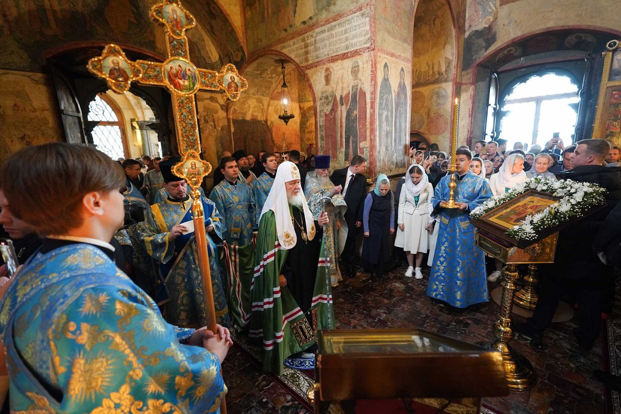 7 апреля 2025 года, в праздник Благовещения Пресвятой Богородицы, сотую годовщину преставления святителя Тихона, Патриарха Московского (1925), Святейший Патриарх Московский и всея Руси Кирилл совершил Божественную литургию святителя Иоанна Златоуста в Благовещенском соборе Московского Кремля.