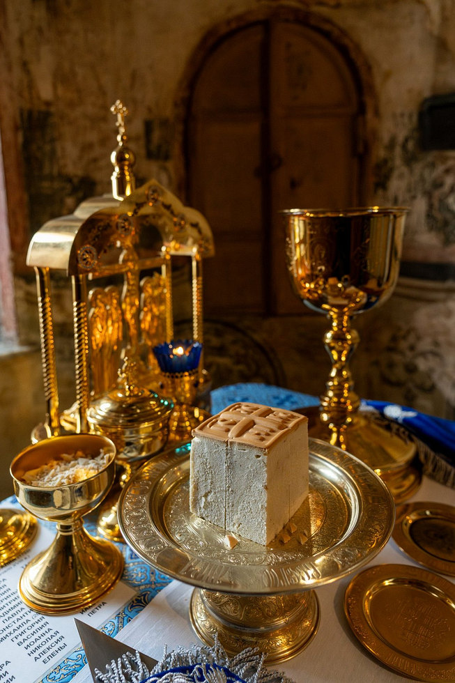 Еще молимся Всемилостивому Господу нашему о еже прияти сие благодарение нас, недостойных рабов Твоих о Твоих благодеяниих, яже излиял еси изобильно в мимошедшее пятидесятишестилетие служения у Престола Божия Святейшаго Патриарха Кирилла, о еже и в грядущая лета преизливати на нем благоутробие человеколюбия Твоего чрез богатыя милости и щедроты Твоя, молим Тя, Вседаровитый Господи, услыши и милостивно помилуй».