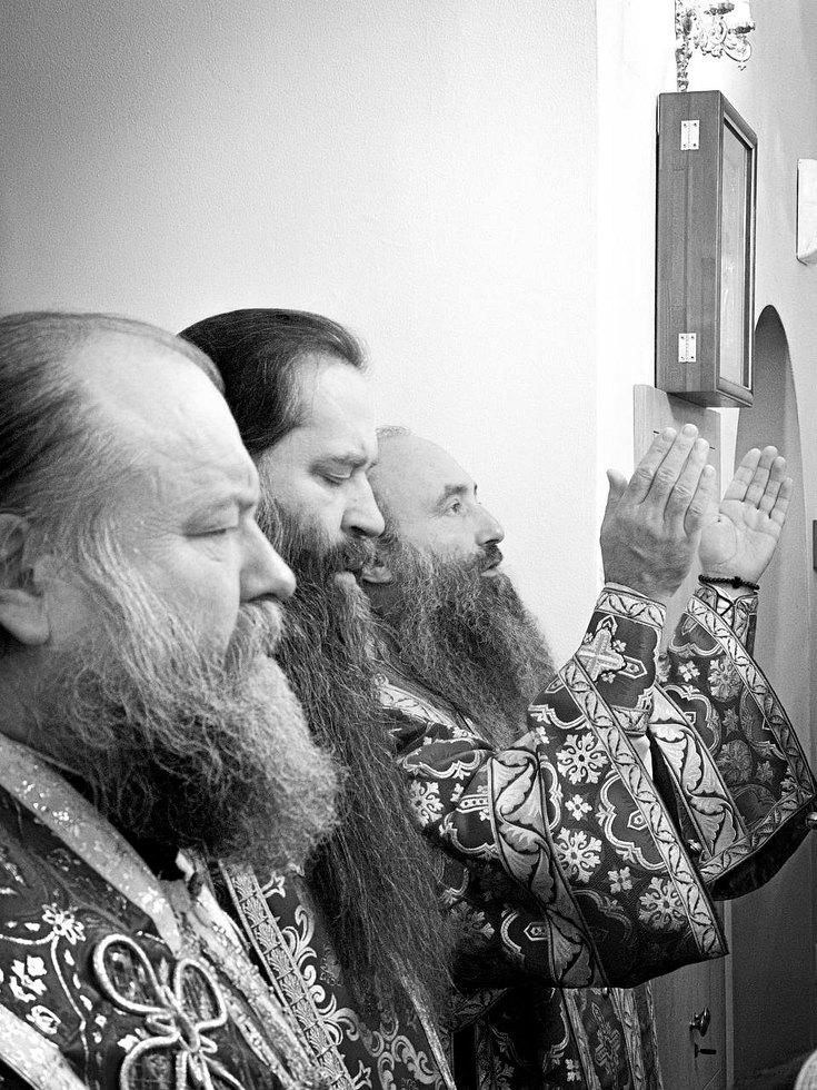 От имени прихода со словами благодарности за совместное служение к Их Преосвященствам обратился помощник настоятеля иеромонах Ефрем (Русу) и подарил им иконы Святой Троицы.