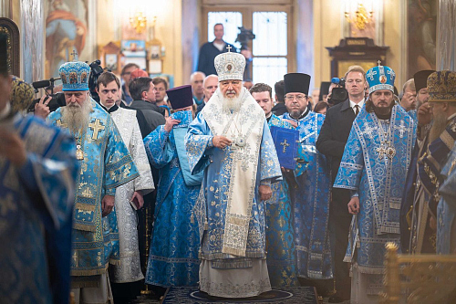 На сугубой ектении были вознесены особые прошения, Предстоятель Русской Церкви прочитал молитву о Святой Руси.