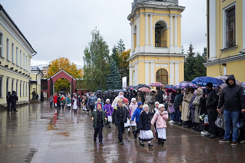 В храме молились настоятельница Покровского монастыря игумения Феофания (Мискина) с сестрами обители, воспитанницы монастырского приюта для девочек, благотворители монастыря, многочисленные верующие.