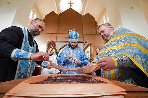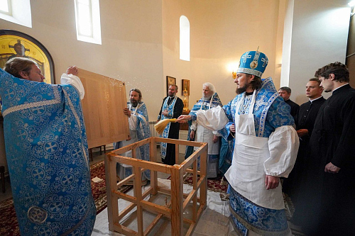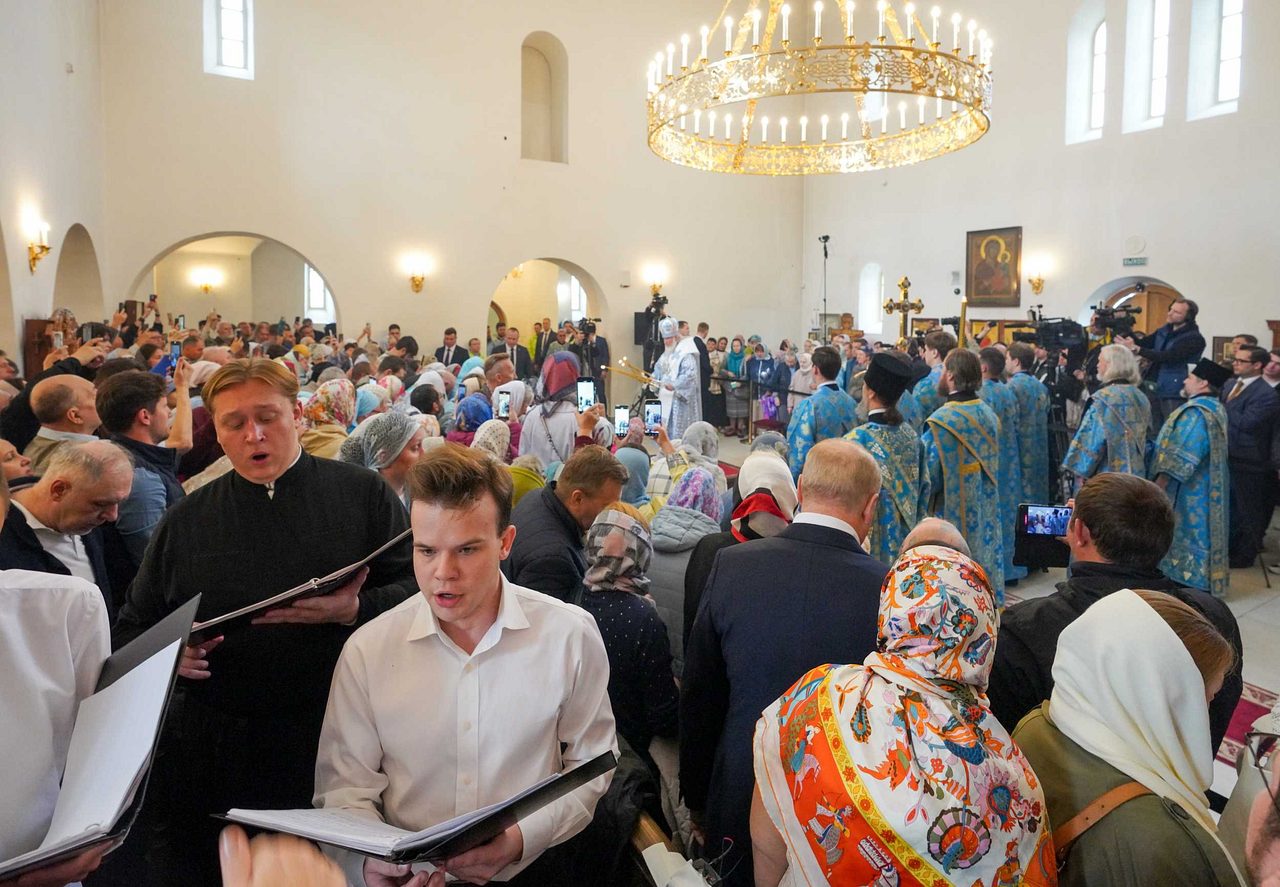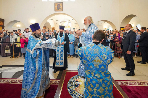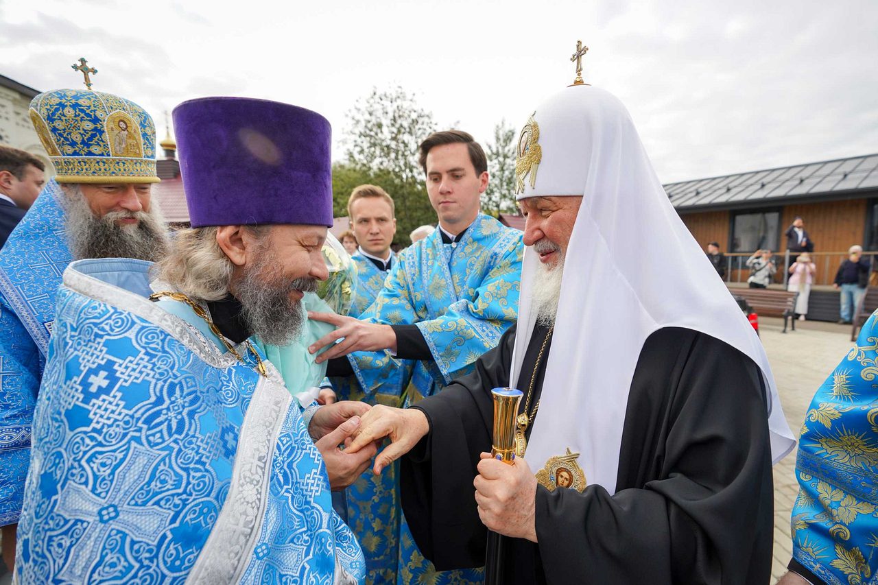 Были освящены два престола: центральный — в честь благоверных князя Петра и княгини Февронии Муромских; южный — в честь преподобных Ксенофонта и супруги его Марии. Также Святейший Владыка освятил 20 антиминсов.
