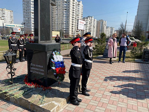 На мероприятии присутствовали и возложили цветы ребята из отряда Юнармейцев, школьников Северного Бутова.