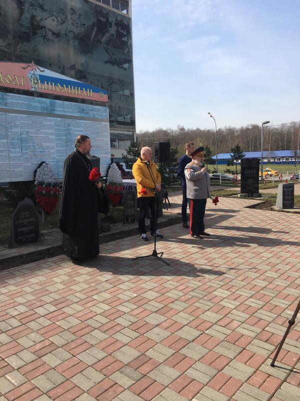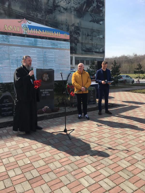 Настоятелем была совершена заупокойная молитва по всем «воинам, живот свой за веру и Отечество положившим» и объявлена минута молчания. Игумен Дамиан обратился к собравшимся со словом о бережном отношении к истории России и памяти наших воинов.