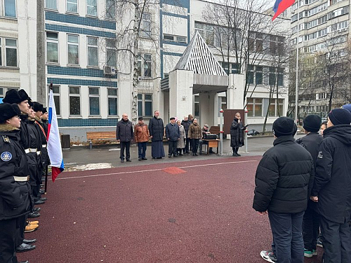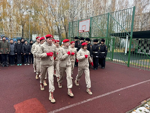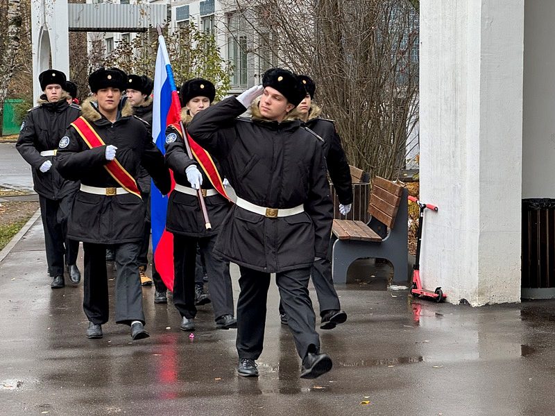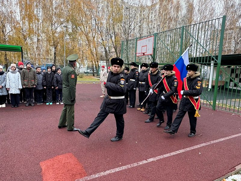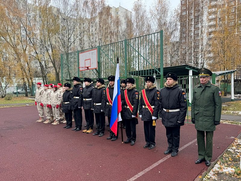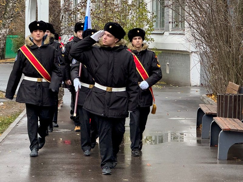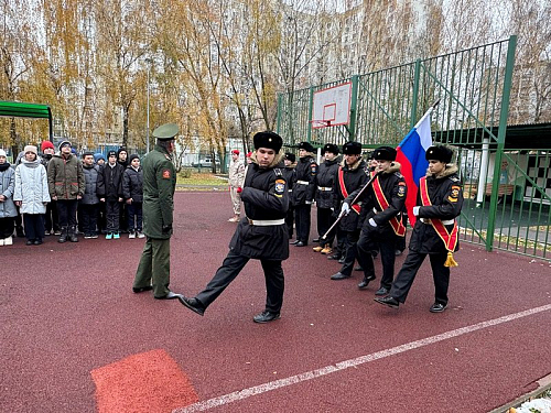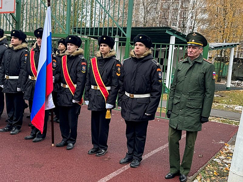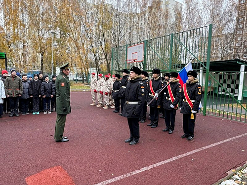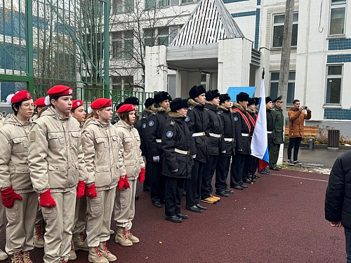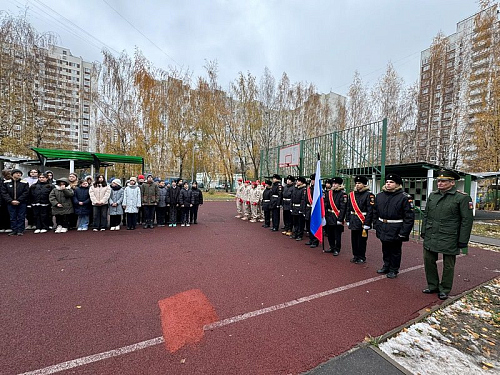 Перед рядами кадетов и гостей был пронесен Государственный флаг России, флаг города Москвы и знамя Юнармии и прозвучал Гимн Российской Федерации.