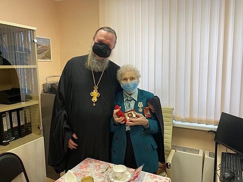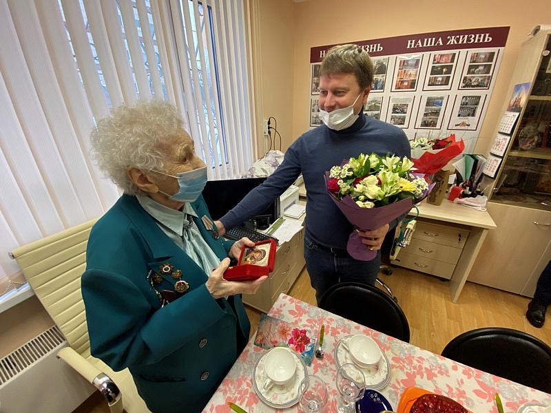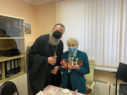 Тепло поздравил Валентину Владимировну игумен Дамиан, который преподнес ей букет цветов и икону.