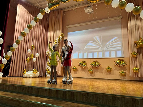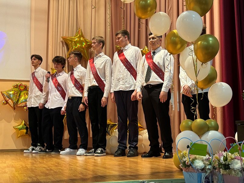 Выпускники, учащиеся 11-х двух классов, школьники, учителя и родители собрались в актовом зале школы. Прозвучал Гимн Российской Федерации.