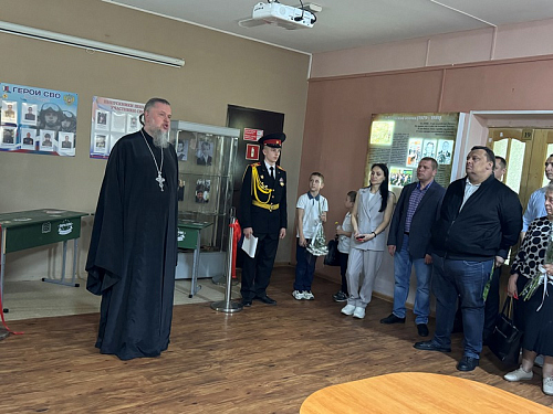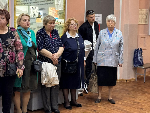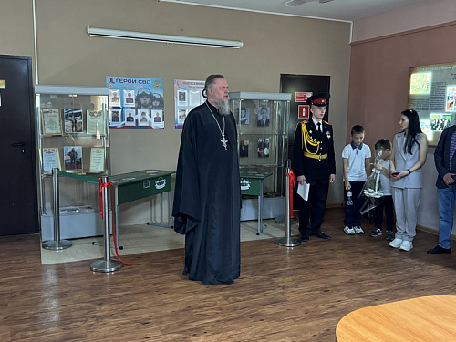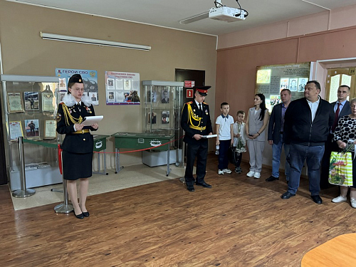 Далее все перешли в музей школы, где были установлены "Парты Героя". Близкие героев разрезали красную ленту.