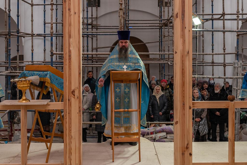 по окончании которого поблагодарил прихожан за совместную молитву и поздравил с совершением первого молебна в новом храме. В завершение иерей Иоанн окропил всех собравшихся святой водой.