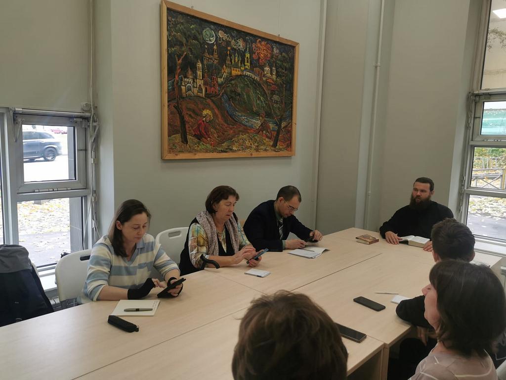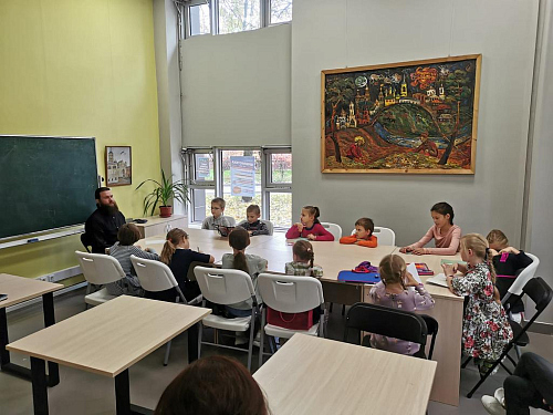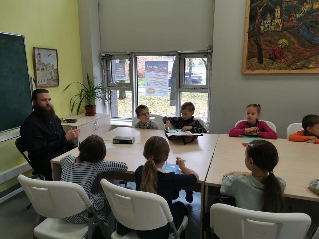На первом в этом учебном году занятии настоятель храма поприветствовал ребят, обсудил с ними предстоящие планы на новый учебный год и познакомил их с предметами, которые они будут изучать.