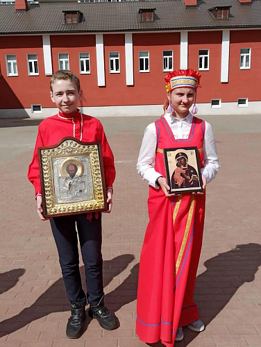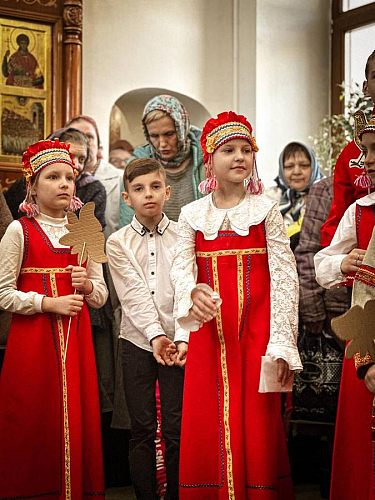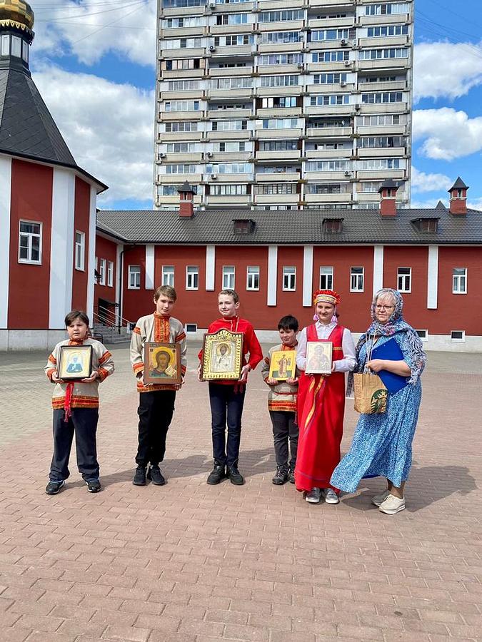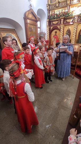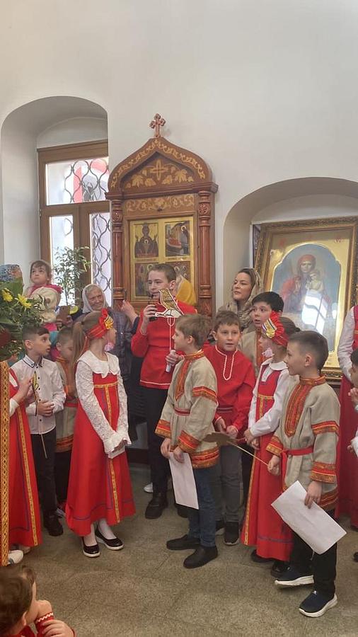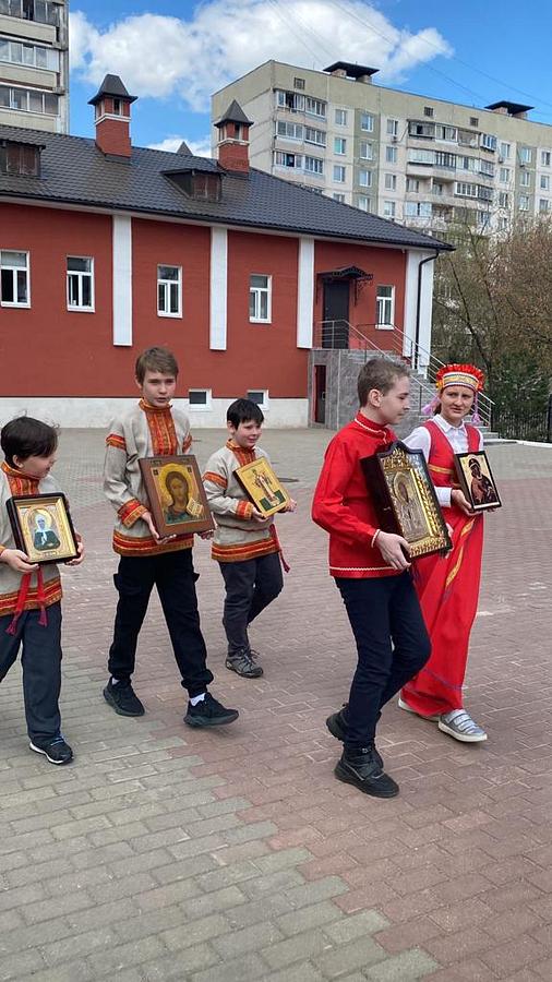 После праздничного Крестного хода по окончании поздней Божественной Литургии, в котором дети приняли непосредственное участие, неся святые иконы, в храме учащиеся представили литературно-музыкальную композицию.