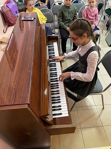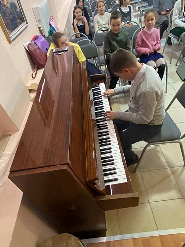 - «Поэтическая картинка №6», муз. Э. Григ, фортепиано, исп. ученица Воскресной школы Никонова Дарья;