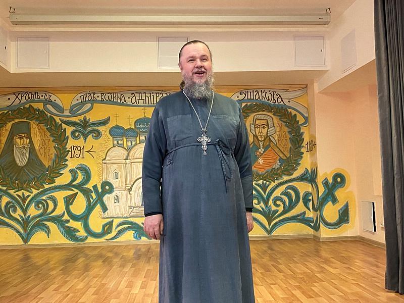Открыл мероприятие настоятель храма игумен Дамиан (Залетов). Он разъяснил детям и взрослым, собравшихся в актовом зале дома причта значение установленных дат, пояснив значение в нашей жизни книги, музыки и театра, указал на религиозные корни культуры. В связи с этим настоятель отметил важность изучения в современной школе Основ православной культуры.