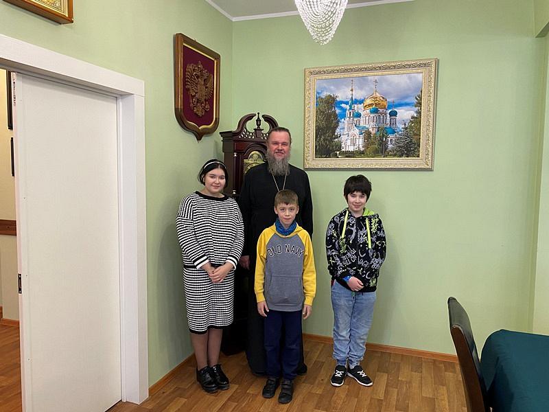 Настоятель проверил знания ребят из 3 класса по Евангельской истории. Учащиеся рассказали пройденный материал по событиям брака в Канне Галилейской, связанной с именем апостола Симона Канонита.