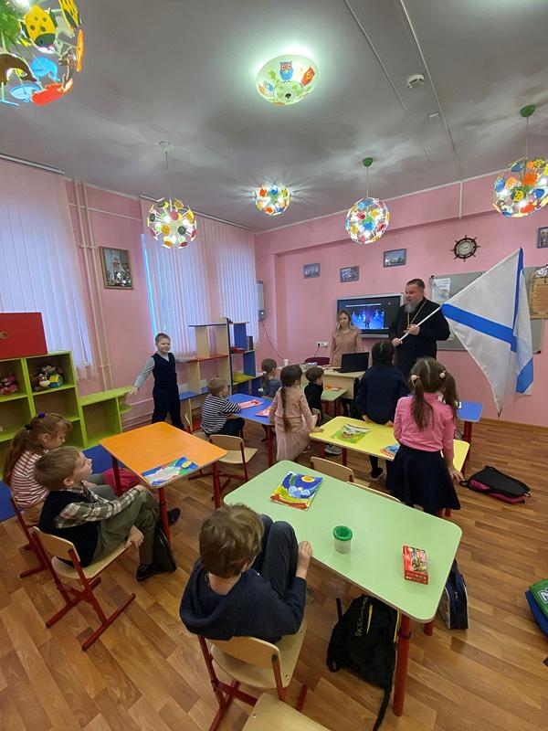 Ребята с интересом выслушали рассказ об Андреевском флаге, добавляли сведения, которые они знали, сами задавали интересующие их вопросы.