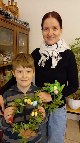12 мая 2024 года после Божественной Литургии в Воскресной школе храма преподобного Моисея Мурина в Южном Бутове состоялся мастер-класс по созданию пасхальных венков для украшения интерьера: его провела руководитель кружка изобразительного искусства Татьяна Кизка.