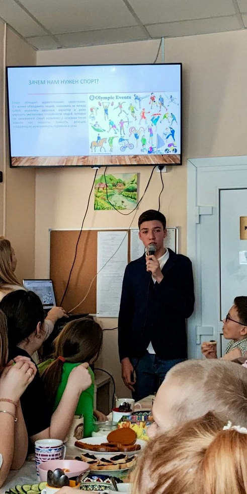 На общешкольном мероприятии с докладами выступили ученики старшей группы Артём Туев и Макар Рубцов.