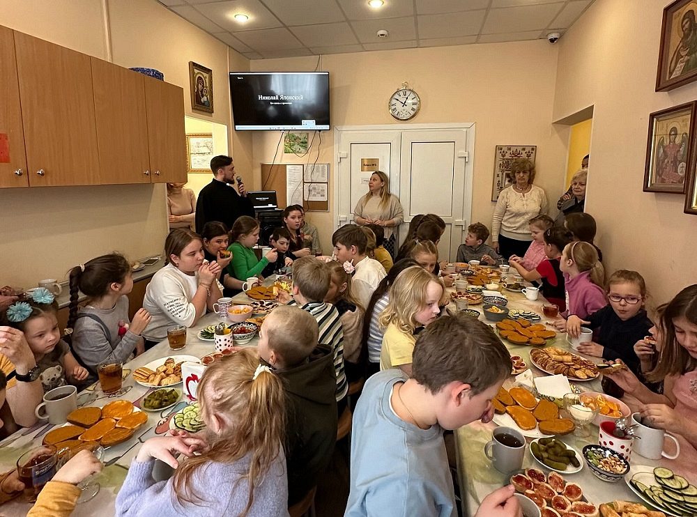 23 марта 2025 года в Воскресной школе при храме преподобной Евфросинии, великой княгини Московской, в Котловке был проведен урок, посвященный жизни и трудам святителя Николая (Касаткина). В начале мероприятия с приветственным словом ко всем собравшимся обратился директор Воскресной школы диакон Константин Бабак.