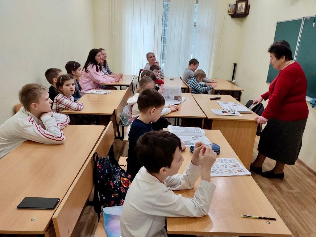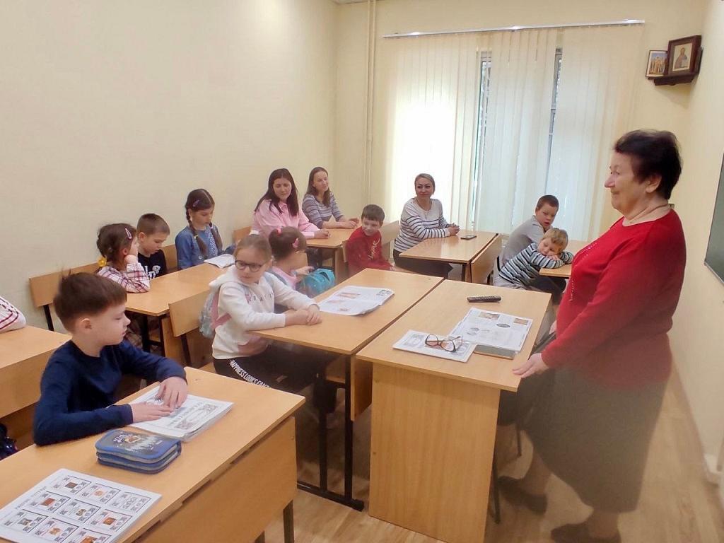 30 апреля 2023 года в Воскресной школе состоялся открытый урок, посвящённый празднику Воскресения Господа нашего Иисуса Христа и дню памяти святых жен-мироносиц. Преподаватель Закона Божия Тамара Алексеевна Брянских осветила значимость события Пасхи Господней и в конце занятия ответила на вопросы учащихся.